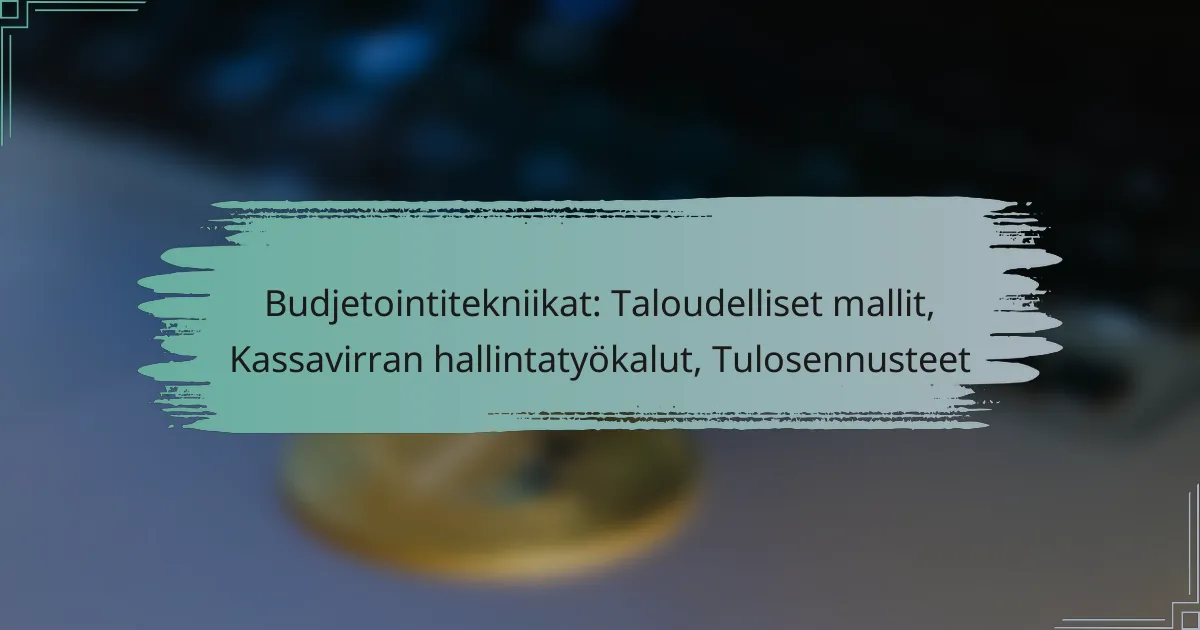 Budjetointitekniikat ovat menetelmiä, joita organisaatiot käyttävät taloudellisten resurssien suunnittelussa ja hallinnassa. Ne auttavat yrityksiä arvioimaan, kuinka varat jaetaan eri toimintoihin, mikä parantaa taloudellista päätöksentekoa ja resurssien optimointia.